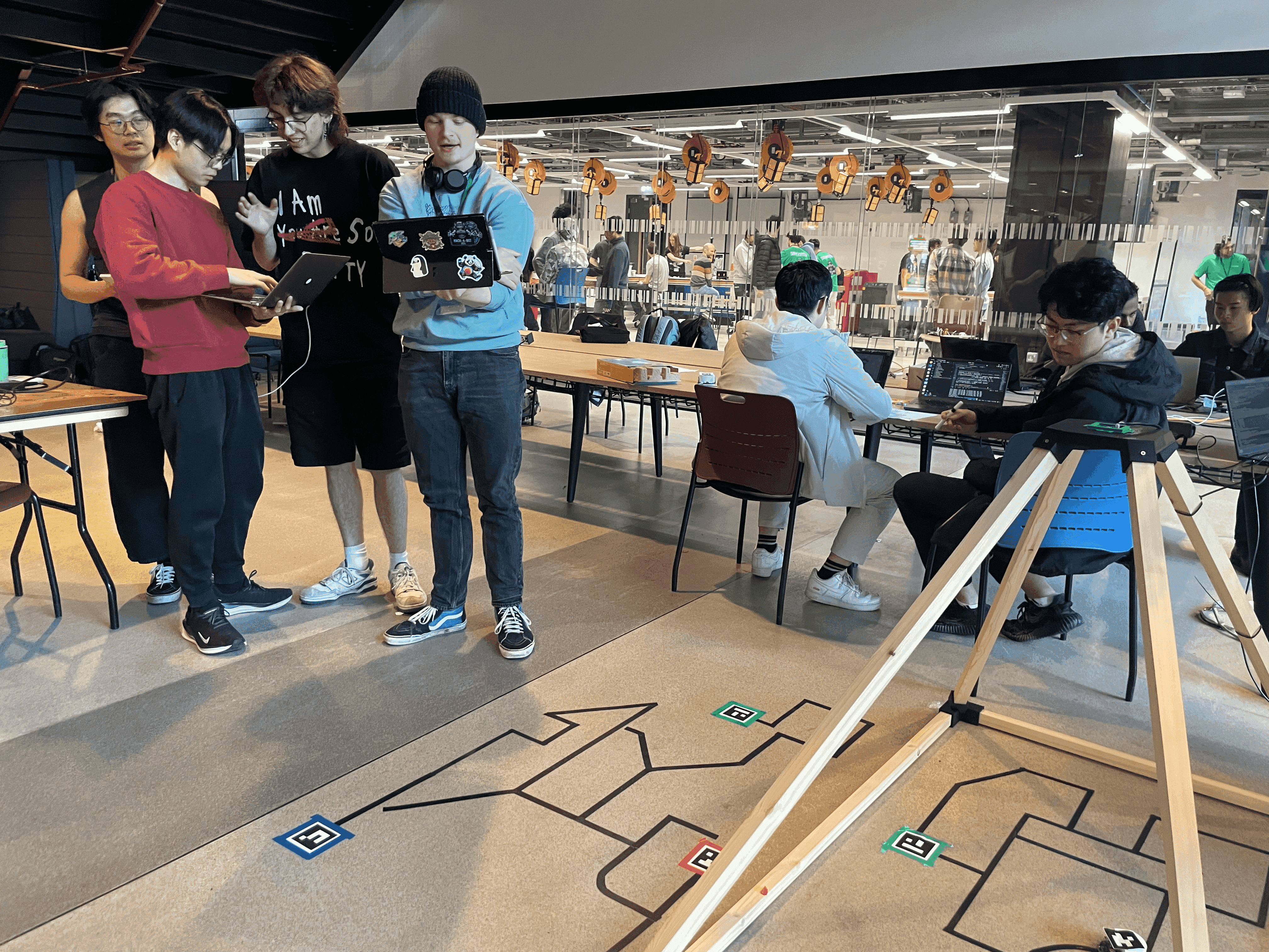 At the start of the hackathon, each team gets 1 MONA to test with. Use that initial window to coordinate with the other teams and agree a shared fiducial marker system that everyone can use reliably from the shared arena camera. We recommend that someone generates the marker sheets early and prints them on the university computers before incompatible mount choices spread across teams.